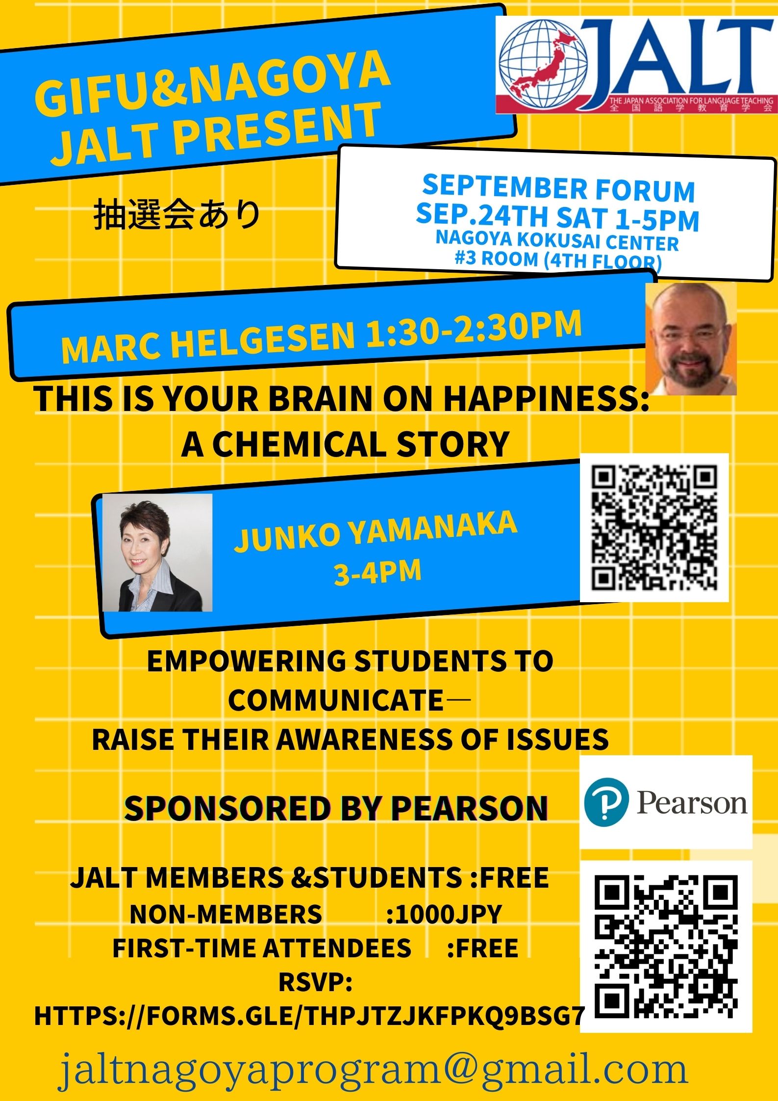 BIO: Clare Kaneko holds a master’s degree in TESL / TEFL from the University of Birmingham. She is currently the president elect for the Japan Association of Language Teaching. Clare has been working in English education in Japan in a variety of contexts since 1999. This includes teaching at both private and public schools, students aged 2 to 75. Her approach to English teaching is to have students express their true selves through the use of English, as well as encouraging students to think critically on all issues that arise in the language classroom.