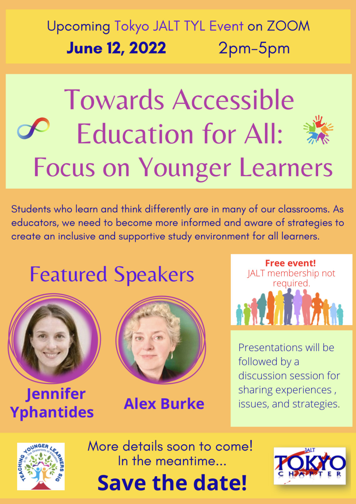 This presentation is for teachers who are interested in learning more about autism from a parent perspective. The presenter will discuss the first symptoms of autism in small children and give specific examples from her own experience. She will also discuss the diagnostic process, supports that are available in the community, and the experience of advocating for services within the school system. Useful, concrete tips will be given to teachers in order to better support these students inside and outside the EFL classroom and to liaise with their parents.